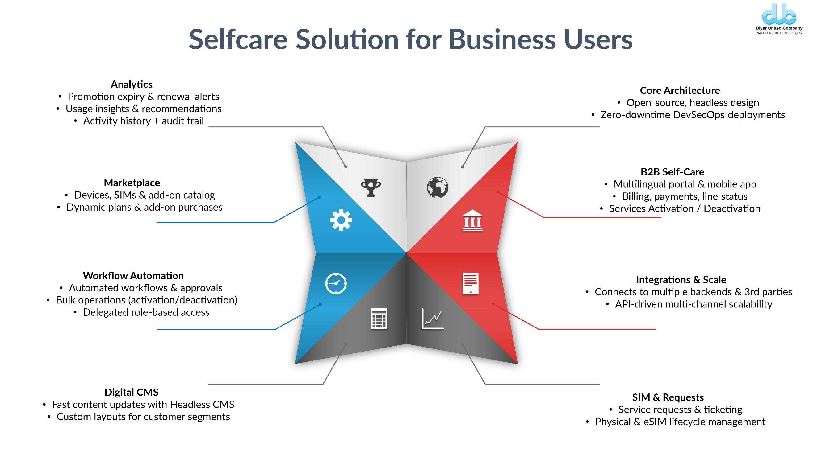 Since its establishment in 1980, Diyar United Company has been delivering innovative Information and Communication Technology (ICT) solutions and services in Kuwait and across the Middle East. Building on a solid foundation of expertise and trust, Diyar provides value-driven solutions that address industry-specific challenges across government, homeland security, oil and gas, financial services, telecommunications, transportation, education, retail, and healthcare. The company is committed to continuous innovation, strengthening global technology alliances, and investing in intellectual capital to drive digital transformation and societal progress. Guided by its unwavering promise to deliver “International Quality by Local Professionals,” Diyar continues to be a trusted Partner in Technology for organizations across the region.
