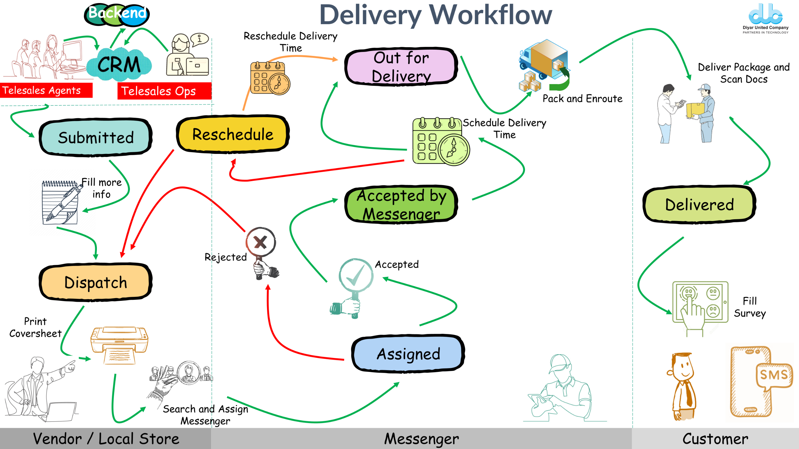 A unified Delivery Management System built for telecom operators and enterprises that handle large volumes of device, SIM, and service deliveries. The platform includes a central Admin Portal, Vendor/Store dashboard, and a dedicated Messenger App for field agents.