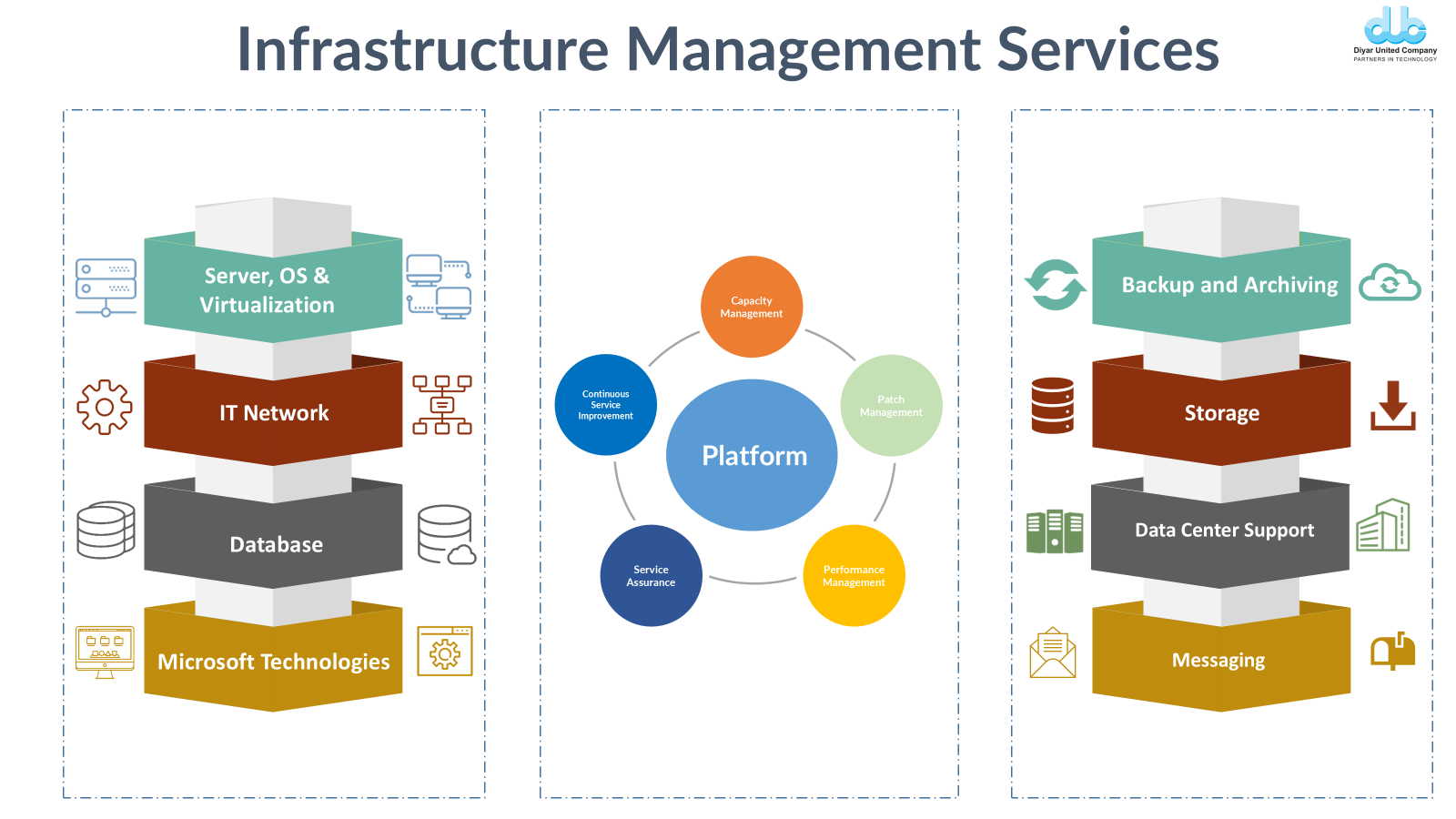 Infrastructure Management Services span data center platforms, middleware, databases, integration layers, private/public cloud environments, and network-connected services. Through 24×7 NOC operations, we monitor and assure all business-critical applications, resolving service degradation, customer-impacting issues, and system-level alarms proactively.